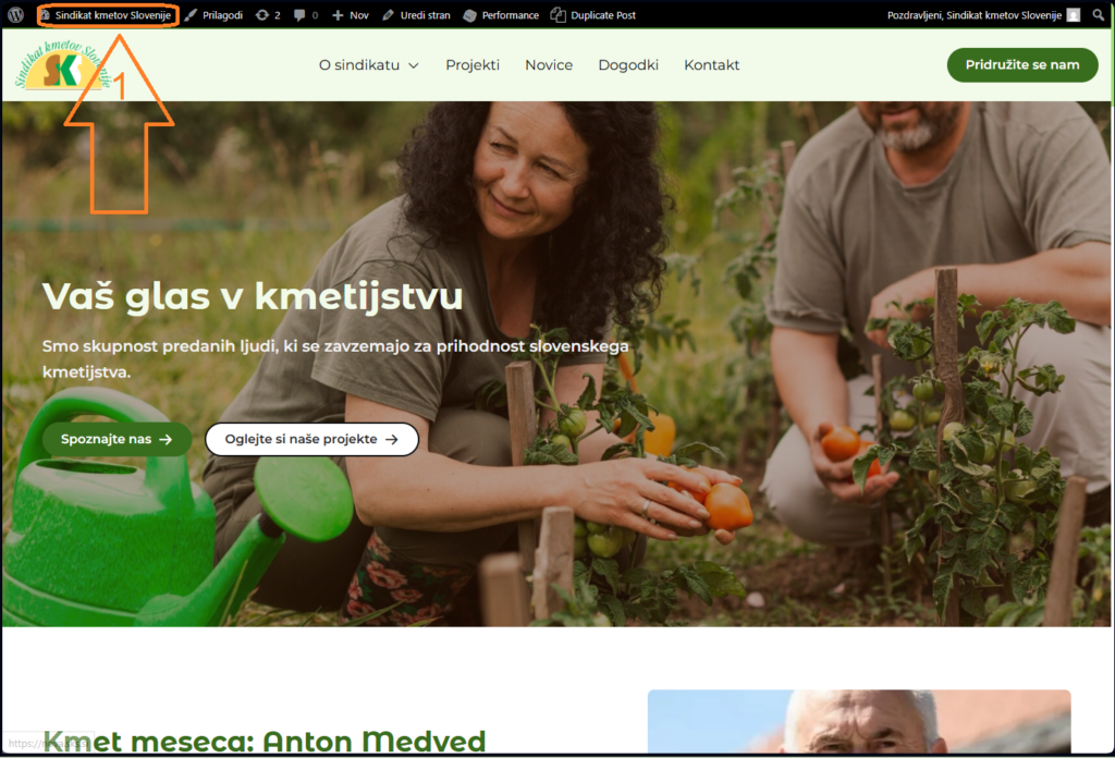 6. Alternativno lahko najprej odprete nadzorno ploščo s klikom na gumb Sindikat kmetov Slovenije (1). Potem nadaljujete po že opisanem postopku v korakih št. 2 in 3.