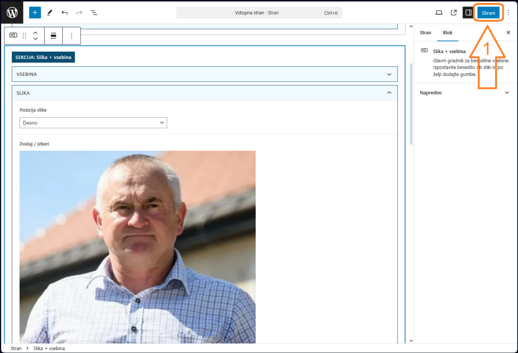 14. Ko zaključite z urejanjem v zgornjem desnem kotu kliknite gumb Shrani (1).