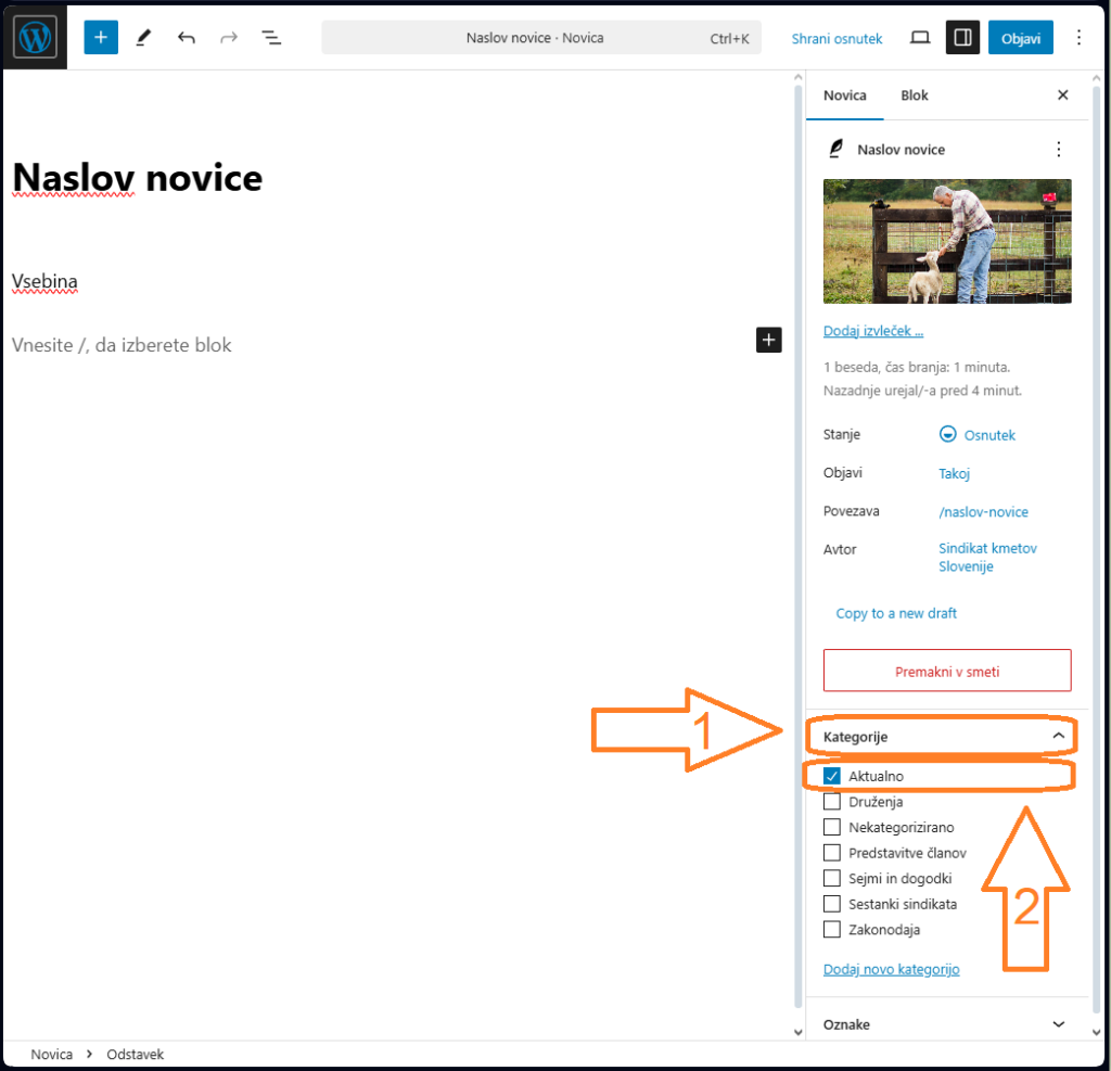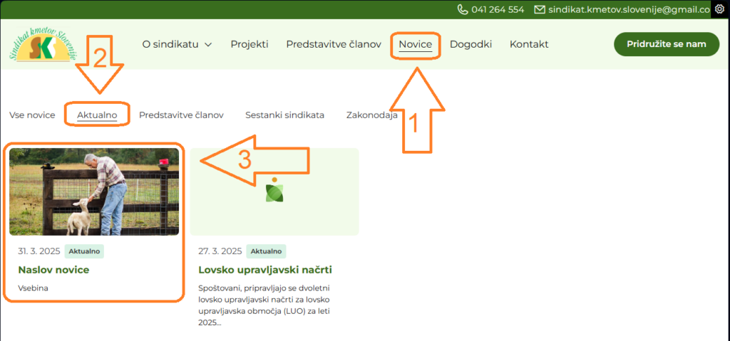 17. Novica se samodejno doda tudi v ustrezno kategorijo na seznamu vseh novic (1) (2) (3)