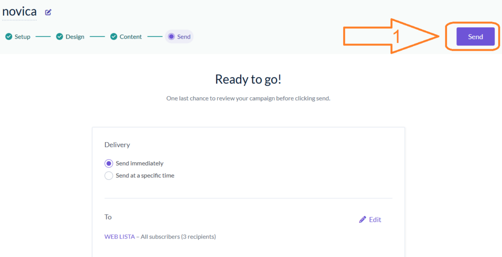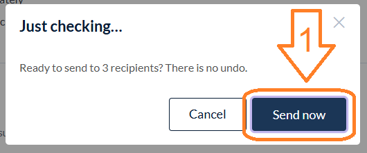 6. Potrdite pošiljanje s klikom na gumb Send now (1).